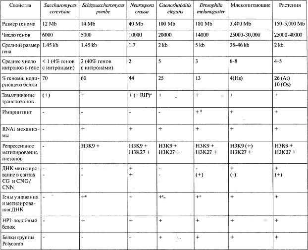 Таблица 9.1. Сведения о геномных и эпигенетических компонентах у используемых эпигенетических модельных систем