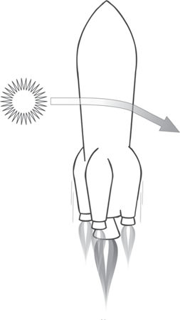 Находясь на орбите, станция стремится улететь от Земли по прямой линии, но падает, повинуясь силе притяжения. Оба движения компенсируют друг друга, благодаря чему станция продолжает оставаться на прежней высоте, но при этом все же падает. Когда Эйнштейн размышлял над своей теорией, его посетила еще одна замечательная мысль: луч света, который пересекает внутри движущийся с ускорением космический корабль, будет отставать от его движения и, как следствие, изгибаться. Но если гравитацию невозможно отличить от ускорения, то и гравитационное поле тоже должно отклонять свет.