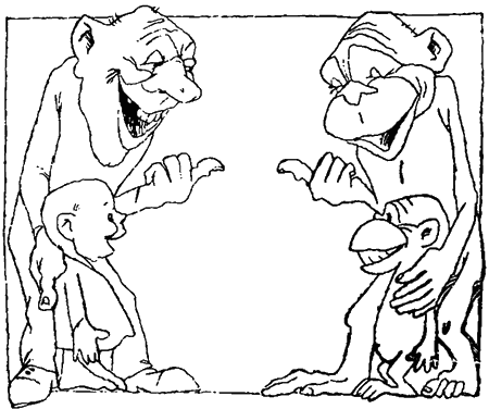 Человечьего в обезьянах хоть отбавляй. Одна мимика чего стоит. Шимпанзе, например, грустят и веселятся так же грустно и весело, как человек. И сердятся они похоже. И волнуются. А о любопытстве и «обезьянничанье» обезьян написаны сотни рассказов.