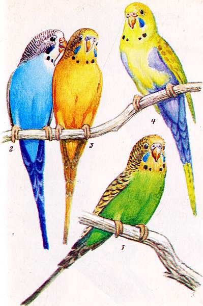 Таблица I Волнистые попугайчики: дикая норма (1) и домашние формы (2–4)