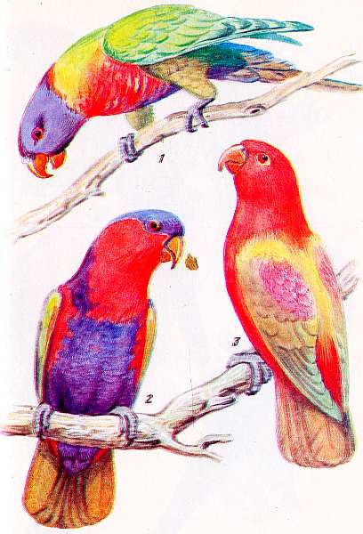 Таблица III Лори: горный (1), дамский (2) и желтоспинный (3)