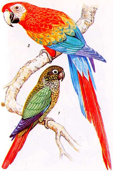 Таблица XI Коричневоухий конюр (1) и красный ара (2)