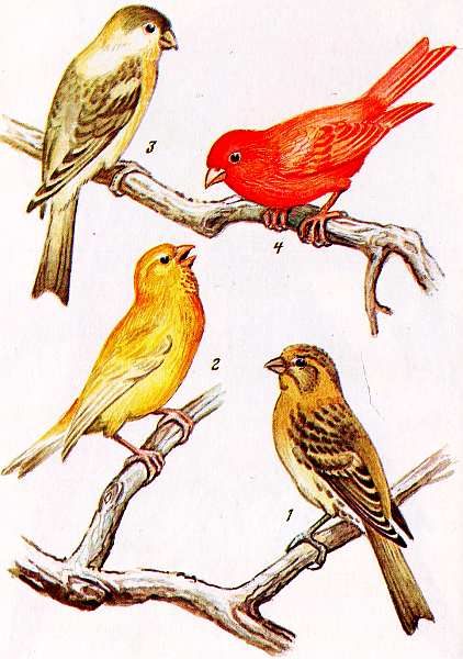 Таблица XII Канарейки: дикая норма (1) и домашние формы (2–4)
