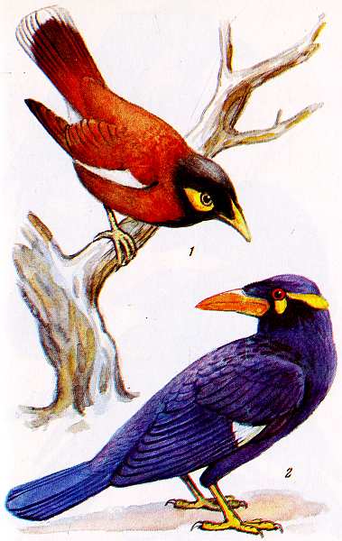 Таблица XIII Майны: обыкновенная (1) и священная (2)