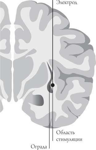 Пациентке, которой проводилась эксплоративная операция с целью локализации источника эпилептических припадков, ввели электрод рядом со скрытой глубоко внутри мозга тонкой пластинкой серого вещества, называемой оградой. Данную область мозга никогда ранее не стимулировали.