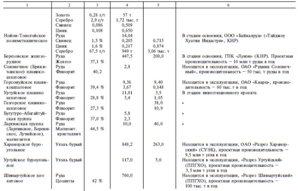 Таблица 6.19 Геолого-экономические показатели месторождений полезных ископаемых горно-промышленного района «Юго-Восток» (Забайкальский край)