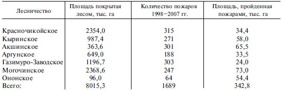 Таблица 6.25 Количество и площади пожаров в приграничных лесничествах за 1998–2007 гг.