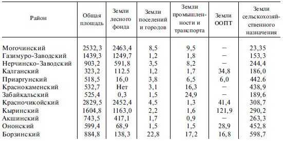 Таблица 6.27 Структура землепользования приграничных районов Забайкальского края, тыс. га
