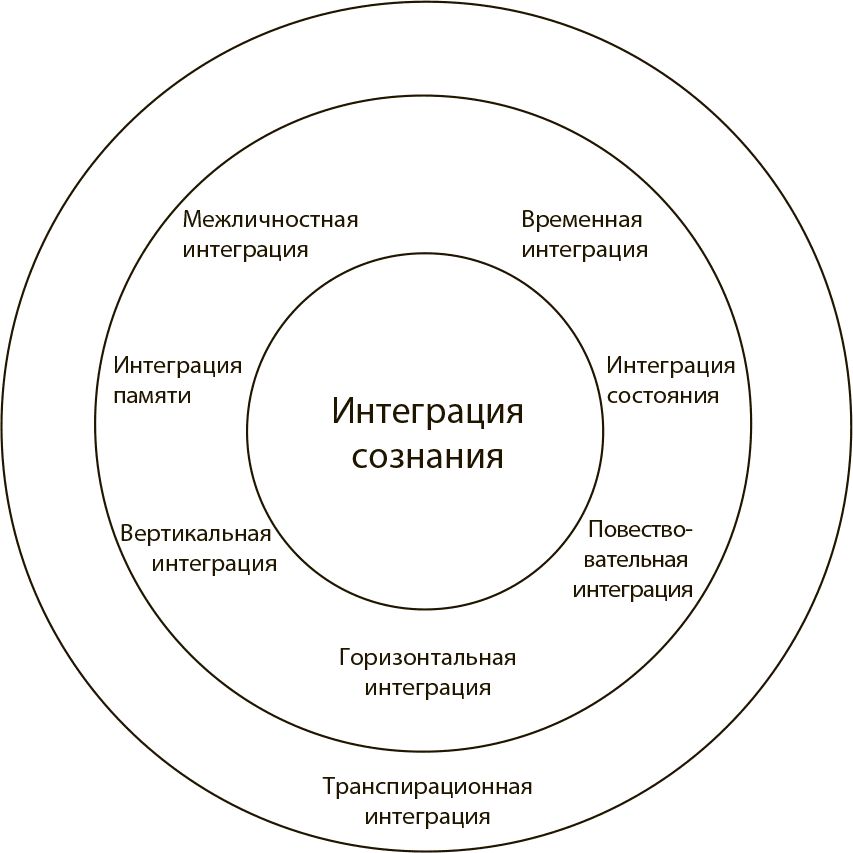 По мере того как мы глубже осознаём свою жизнь, возникает потребность в интеграции состояния, поскольку мы чувствуем, что в нашей психике сосуществуют конфликтующие между собой состояния ума. Состояние ума определяется паттернами нейрональной активности, обладающими преходящим, но мощным воздействием, разворачивающимся в настоящем мгновении. То или иное состояние организует, склеивает разбросанные по мозгу процессы и объединяет их в замкнутое само на себя целое. Состояние стабилизирует макроансамбли нейронных кластеров, превращает их совокупность в функциональную единицу. Мы, кроме того, обладаем состояниями «я», в которых существуют устойчивые кластеры нейрональной активности: например, «я», играющий в теннис, читающий книгу, занимающийся любовью или гуляющий по лесу. Каждый из этих устойчиво воспроизводящихся паттернов бытия содержит развертывающуюся историю, часто оформленную определенными правилами и обладающую доступом к памяти (эксплицитной и имплицитной), необходимой для поддержания данного состояния.