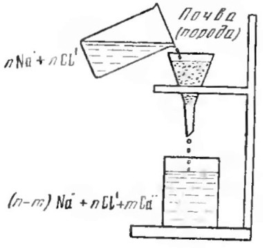 Рис. 1. Опыт, демонстрирующий обменную адсорбцию катионов (n и m — эквивалентные количества ионов)