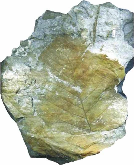 Фото 37. Отпечаток листа покрытосеменного растения из эоценовых отложений острова Шпицберген.