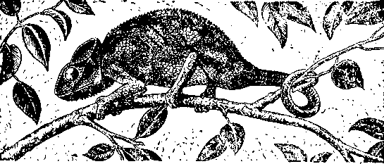 Способностью изменять цвет в особенности славится живущая в Африке ящерица, называемая хамелеоном. Она меняет окраску не только применительно к цвету обстановки, но и под влиянием раздражения. Если ее потрогать палочкой, она из синей вдруг сделается бурой или желтой, сначала пятнами, а потом вся целиком. У нас в пустынях Туркестана водится довольно крупная ящерица, которая тоже может играть цветами. Окраска ее изменяется, главным образом, на горле и на груди. Вследствие такой ее способности русские жители Туркестана ошибочно называют ее хамелеоном, в зоологии же она называется агамой.