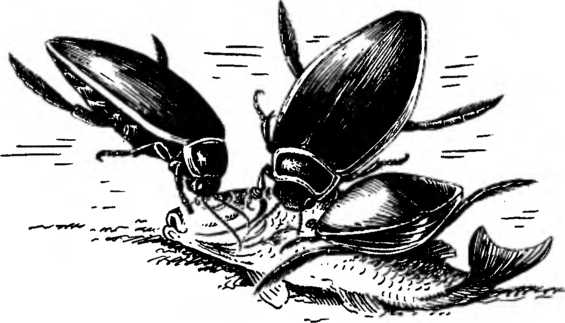 Жук поранил рыбу, и несколько капель крови попали в воду. Кровь «разошлась» в воде. Если вблизи есть еще плавунцы, они тотчас же кинутся искать добычу. И вот на беднягу карася набрасываются уже несколько жуков…