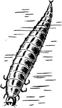 Посмотрите на голову личинки. Вы найдете на ней усики, щупики, две кучки простых глазков. Но сколько ни смотрите, не увидите самого главного: рта нет.
