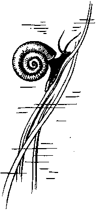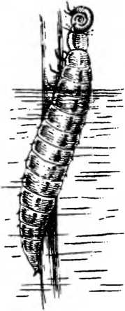 Для этого совсем не нужно выползать целиком из воды: достаточно высунуть голову. Личинка так и делает. Схватив улитку, она ползет по растениям к поверхности воды. Ей не приходится ползти уж очень далеко: обычно она находится в зарослях растений недалеко от поверхности. Для дыхания ей нужно подниматься наверх (она дышит так же, как личинка плавунца), пловец она плохой, а «пешком» из глубины скоро не проберешься. Вот и придерживается личинка зарослей вблизи поверхности: здесь и до воздуха недалеко, и улитки есть.