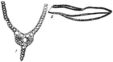 1 — поперечный срез листа, 2 — лист (вид сбоку).