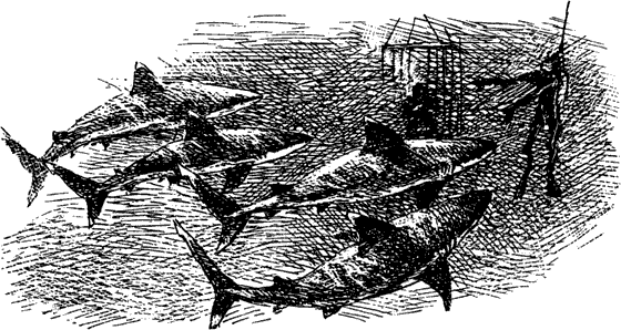 Конечно, глубоководные акулы сопровождают стаи морских млекопитающих, иногда следуют и за кораблями, кормясь отбросами, но это еще ничего не значит, ведь отбросы, как правило, состоят из свежей пищи. И потребность акул в калориях, сдается нам, не так уж велика, ведь они предпочитают плавать в открытых водах, где нет никаких помех и малейшее движение позволяет им покрыть значительное расстояние. От холода акулы не страдают, расход калорий у них минимальный, так что одной сытной трапезы должно хватить надолго.