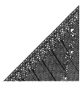 Интересно, что поведение автоматов класса IV совершенно непредсказуемо. Эти результаты проходят самые строгие математические тесты на случайность распределения, но при этом создают не просто шум, а некие повторяющиеся рисунки. Только повторяются эти рисунки странным, непредсказуемым образом. Если нас спросят, каким будет значение определенной ячейки через триллион триллионов итераций, у нас нет иной возможности ответить на этот вопрос, кроме как запустить машину и провести все эти итерации. Безусловно, решение детерминировано, поскольку это очень простая модель, но оно абсолютно непредсказуемо.