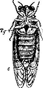 Если кузнечик живет в сухой траве, он бывает такого же цвета, как сухая трава; среди зеленых листьев — он зеленый и т. д. Всякий, кто был в Крыму, наверно слышал пение цикад на деревьях, но почти наверно не видал самой цикады (см. рис.). Когда они сидят на листьях и даже поют, их невозможно заметить, — до такой степени цвет их тела гармонирует с цветом окружающей обстановки. Если их трудно отыскать постороннему существу, то не менее трудно кузнечику отыскать другого такого же кузнечика или цикаде цикаду. Для того, чтобы обратить на себя внимание, кузнечики стрекочут, а цикады поют.