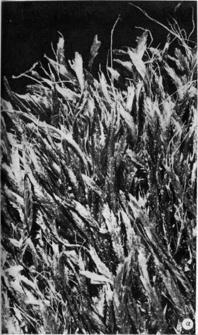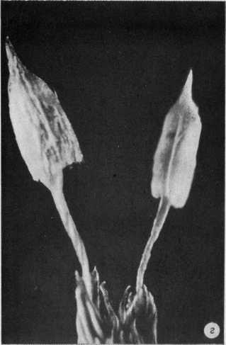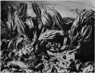 Таблица VI. а — верхоплодный листостебельный мох Bryoxiphium savatieri, один из видов, растущих на прибрежных скалах, и полосе заплеска морских воли; б — еще один представитель рода Buxbaumia — B. minakatae. В Советском Союзе встречается только в южных районах Восточной Сибири и Дальнего Востока.