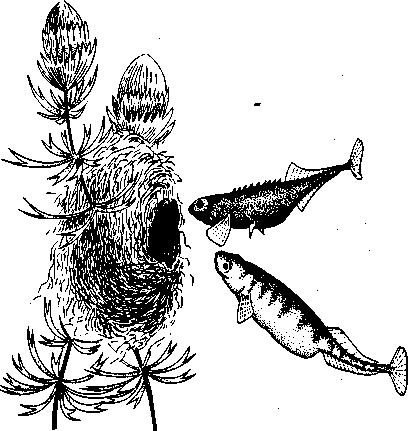 Рис. 22. Самец десятииглой колюшки показывает самке вход в гнездо.