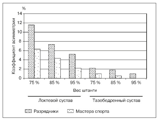 Процессом спортивного отбора, а также адаптацией в ходе многолетней тренировки к выполнению симметричных упражнений обеспечивается естественное сглаживание функциональной асимметрии у спортсменов высокой квалификации.