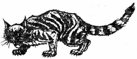 Мне пришлось познакомиться с ней на болоте. Я услышал рычание, раздававшееся из тростника. Подойдя ближе, я увидел среди травы распростертое тело взрослого кенгуру, одна из лап которого была разодрана до кости, а из живота вываливались внутренности. Над ним возвышалось полосатое тело. Это была крупная кошка. Она замерла над своей жертвой и несколько секунд смотрела мне в глаза. Затем она показала мне ослепительно белые клыки и вновь зарычала. Я поспешил выскочить из тростников».