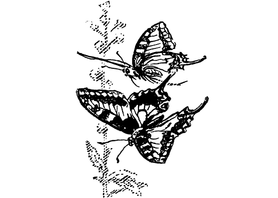 Теперь, следуя намеченному плану, полагалось бы приступить к рассказу еще об одном герое очерков — о маленьких, скромных на вид, сереньких бабочках моли и о том интересном и поучительном, содержательном и важном, что можно сообщить о них. Правда, крылья у них только окаймлены длинными волосками, тогда как есть мотыльки, у которых оба крыла расщеплены на тонкие перьевидные лопасти — по дюжине с каждой стороны. Эти крылья как летное оснащение до сих пор никак не исследовались, хотя для теории аэронавигации воплощенный в них опыт природы не может быть безразличен. Стоило бы задержать внимание читателя также на факте, о котором пишет и Фриш, отмечая, что «на белых узких, блестящих, как атлас, передних крыльях моли черным пунктиром выведен красивый рисунок…». В самом деле, откуда берутся, чему служат рисунки на крыльях бабочек? Это явление настолько привычно, что его просто не замечают и редко кто над ним задумывался. Однако в свое время Фриш опубликовал работу, в которой, упоминая о старых, прерванных еще первой мировой войной исследованиях Ф. А. Гергардта из города Галле, призывал продолжить начатый им анализ.