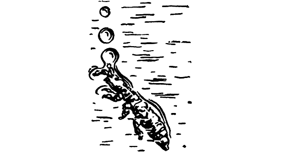 Анурида маритима, погружаясь в воду, со всех сторон окутывается воздухом.