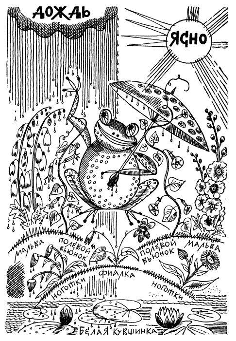 Мальва — растение обычное в палисадниках, садах. Высокое, с яркими цветами, это растение заметно издали. Но не всегда! Иногда мальва поникает, ее крупные цветы не видны — они закрыты. Мальва увяла? Нет, завтра или послезавтра она снова выпрямится, расправит листья и издали будут заметны ее цветы. А сегодня она увяла, потому что изменилась влажность воздуха — надвигается дождь.