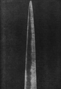 Напротив, игла, которую мы видим на фото 34, с технической точки зрения выполнена безупречно: сама игла сужается в высшей степени равномерно, а ее острие заканчивается аккуратным закруглением. Перед нами самый кончик колючки кактуса, общая длина которой достигает нескольких сантиметров. Безукоризненность ее внешней формы, включая мельчайшие детали, ничем не уступает точности обработки сапфировой иглы, применяемой в радиотехнике (см. фото 35). Технологически же колючку кактуса было бы гораздо труднее изготовить, поскольку она вдвое тоньше иглы пьезоэлектрического звукоснимателя. С помощью этой колючки проигрывались граммофонные пластинки, и что же — воспроизведенный звук оказался лучшего качества.