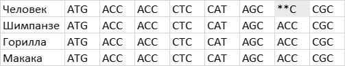 Человеческий ископаемый ген, о котором я хочу рассказать, называется MYH16. В последовательности гена MYH16 у человека отсутствуют два основания, что нарушает правильное считывание текста (соответствующий участок последовательности представлен на рис. 5.4; место отсутствующих оснований обозначено звездочками). У шимпанзе, горилл, орангутанов и макак этот ген остался без изменений.