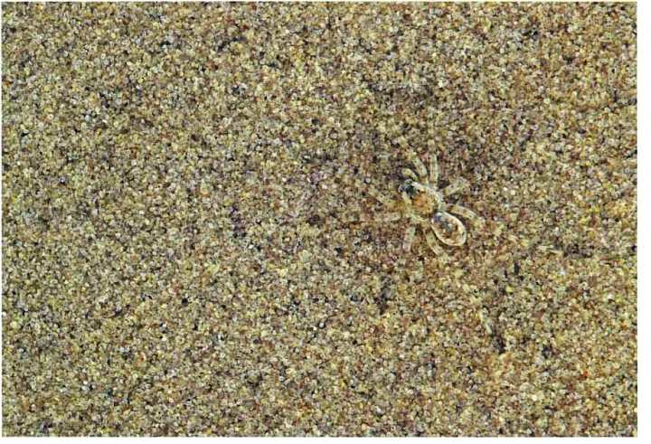 Оправдывая свое название, песчаный паук-волк (Arctosa littoralis) прекрасно маскируется на песке, где он проводит большую часть своей жизни.