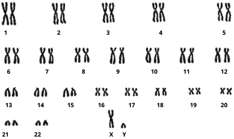 С помощью световой микроскопии были определены размеры всех хромосом человека. Затем все неполовые хромосомы были пронумерованы по уменьшению размера — от 1 до 22. Половым хромосомам не присвоили номер, а назвали X и Y. Как показали более точные последующие исследования, хромосома 21 реально оказалась чуть меньше 22, однако нумерацию хромосом не изменили (чтобы не вносить путаницу). Различие в хромосомных наборах между мужчинами и женщинами состоит в том, что у женщин имеются две половые X-хромосомы (т. е. хромосомы во всех 23-х парах одинаковы), а у мужчин пару с X-хромосомой образует мужская половая хромосома — Y. Каждую хромосому можно рассматривать как отдельный том большого двадцатичетырехтомного собрания сочинений под названием Энциклопедия человека.