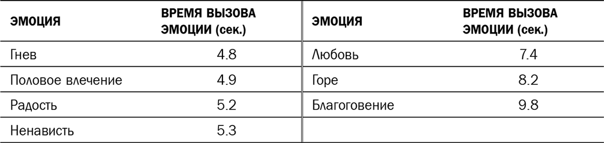 Время, необходимое для того, чтобы вызвать эмоцию