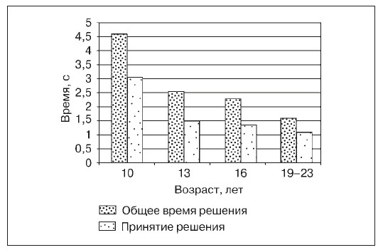 Рис. 69. Возрастная динамика времени решения тактических задач у баскетболистов