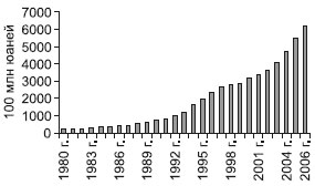 Рис. 11.18. Динамика роста ВРП провинции Хэйлунцзян за 1980–2006 гг. (по данным: [Heilonhjiang statistical yearbook, 2007]).