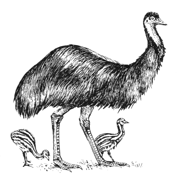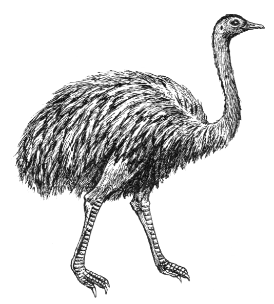 Эму обитает в степях и песчаных пустынях Австралии. Внешне он похож на нанду, но имеет более плотное телосложение и крупные размеры, достигает 180 см в высоту и массы 55 кг. Окраска оперения буровато-серая, на голове черная.