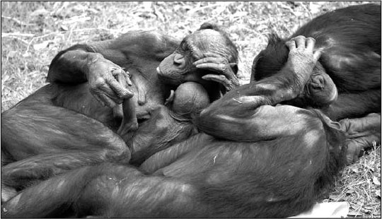У карликовых шимпанзе бонобо секс – отнюдь не только средство воспроизводства. Контакты у членов племени не закрепляются – в сексуальных играх участвуют все: и стар, и млад, причем они постоянно варьируют пол и возраст партнеров