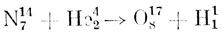 В 1919 г. английскому физику Резерфорду впервые удалось показать, что стабильные ядра могут быть разрушены, если в качестве снарядов для бомбардировки ядер использовать излучаемые радиоактивными элементами альфа-частицы, обладающие энергией 3 - 5 млн. эв, Бомбардируя азот быстрыми альфа-частицами, Резер-форд превратил азот в изотоп кислорода с атомной массой 17. Эту реакцию, называемую ядерной, так как в ней принимают участие ядра атомов, можно представить в следующем виде:
