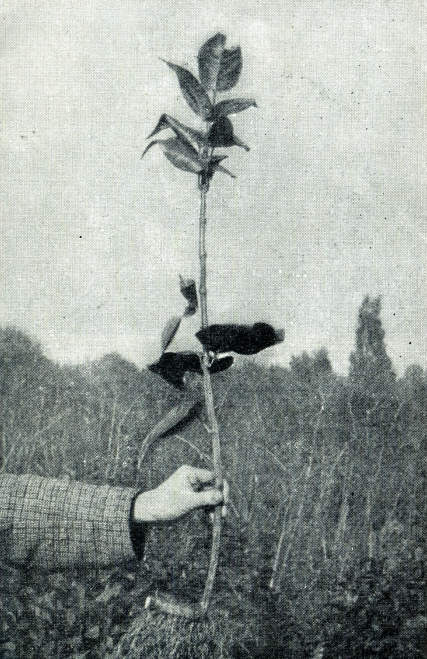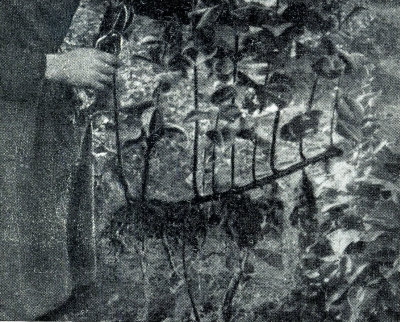При этом способе из одного разложенного побега получается 5—12 отводков 40—80 см длины с корневой системой до 25—35 см.