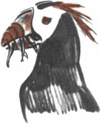 Еще интересней добывали из-под коры насекомых совсем недавно вымершие новозеландские птицы гуии. Самец долбил дерево своим коротким мощным клювом, а самка длинным загнутым клювом извлекала из выдолбленных дырок насекомых.