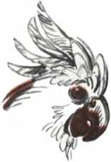 Вот как устроен клюв-дробилка у воробья. Сверху клюв одет в роговой чехол с острыми режущими краями. Нижняя часть клюва чуть меньше верхней, и когда клюв закрывается, режущие края скользят один по другому. В средине нёба роговой выступ, а по бокам тянутся два углубления. Язык покрыт роговой оболочкой и сверху имеет форму ложечки. Захватив несколько зерен, воробей с помощью языка подает их к режущим краям клюва. Здесь зерно измельчается и только после этого проглатывается.