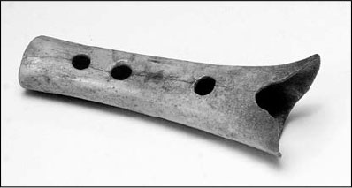 Второй древнейший музыкальный инструмент был обнаружен немецкими археологами – и им снова оказалась флейта. Но эта была изготовлена из бивня мамонта и имела три отверстия для пальцев. Ее длина – 18,7 см. На такой флейте уже можно было воспроизводить достаточно сложные мелодии. Отметим, что изготовить флейту из бивня мамонта или слона гораздо сложнее, чем из медвежьей кости или костей птиц. На юге Германии в целом была найдена 31 древняя флейта.