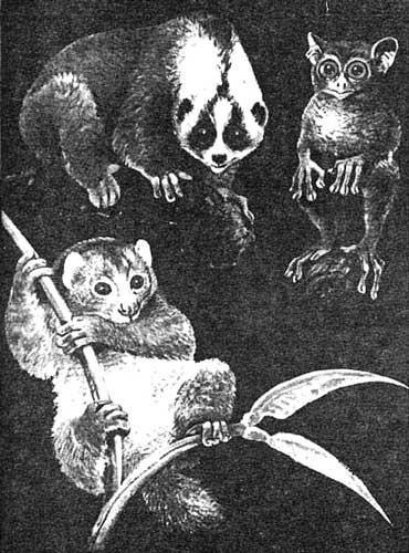 Полуобезьяны лемуры — очень древние животные. Это ночные древолазы, чем-то смахивающие на кошек. Примерно таким был предок всех приматов, в том числе и человека.