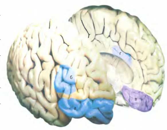 Более сложно устроенная визуально-пространственная матрица не столь хорошо изучена, хотя функциональная томография позволила выделить в этой системе четыре активных отдела, которые, по-видимому, связаны с вопросами “что” и “где”, контролем исполнения и, возможно, повторением образов.