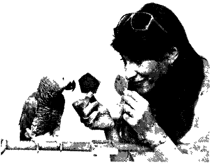 Рис. 6.5. Опыты И. Пепперберг по символизации с попугаем Алексом (фото Д. Линдена с любезного разрешения проф. И. Пепперберг, Аризонский университет, США).