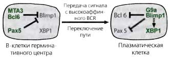Рис. 21.10. Транскрипционная репрессия определяет судьбу В-клеток зародышевого центра и плазматических клеток
