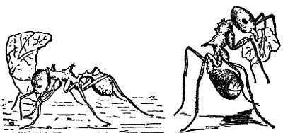 Рис. 27. Муравьи-грибоводы Atta переносят листья (по Гётчу)