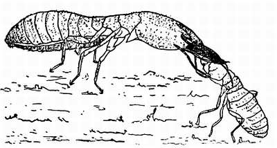 Рис. 30. Маленький рабочий термит вида Bellicositermes natalensis кормит крупного солдата (по Грассе).